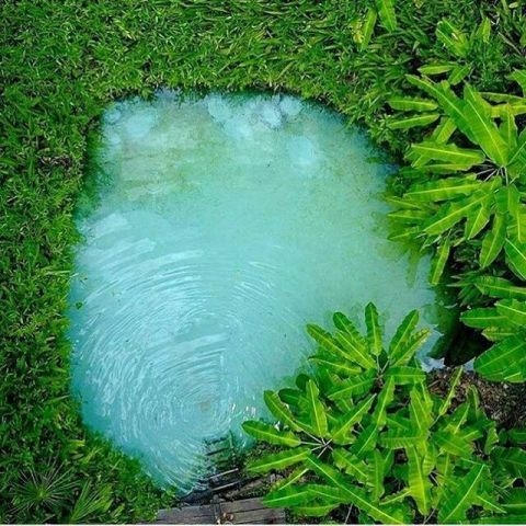 Um poço verde-esmeralda rodeado de vegetação vibrante. A água tem temperatura perfeita e forma um cenário de filme tropical.